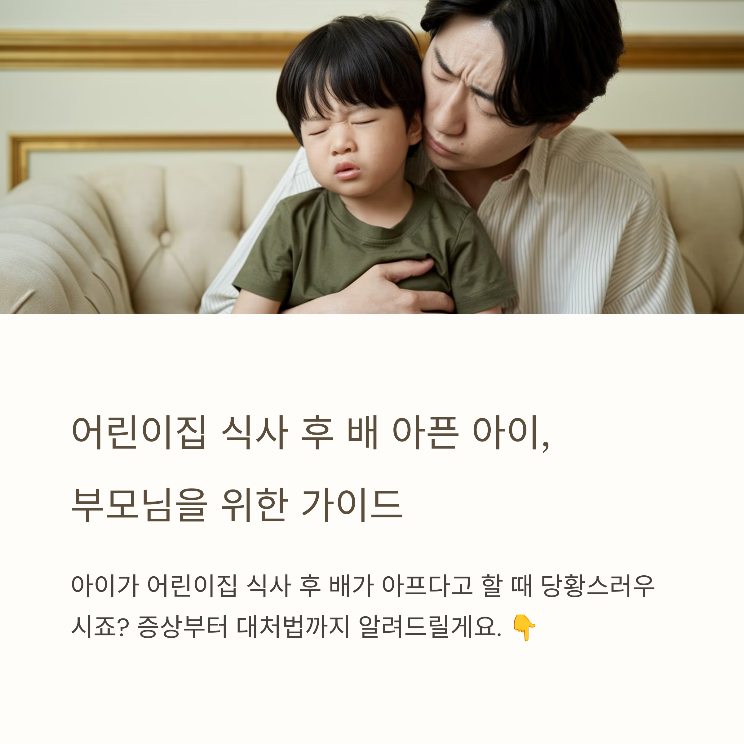 아이가 어린이집에 다니기 시작하면서 스스로 밥을 먹고 다양한 음식을 접하게 되죠. 그런데 갑자기 "배 아파..." 하며 울거나 배를 만지작거리는 모습을 보면 얼마나 속상하고 걱정되시나요? 저도 우리 아이가 어린이집 밥을 먹고 처음으로 배가 아프다며 울 때 얼마나 당황스러웠는지 몰라요. 오늘은 어린이집 밥을 먹고 배가 아플 때 나타나는 증상, 원인, 그리고 현실적인 대처법을 따뜻하게 알려드릴게요. 🌸