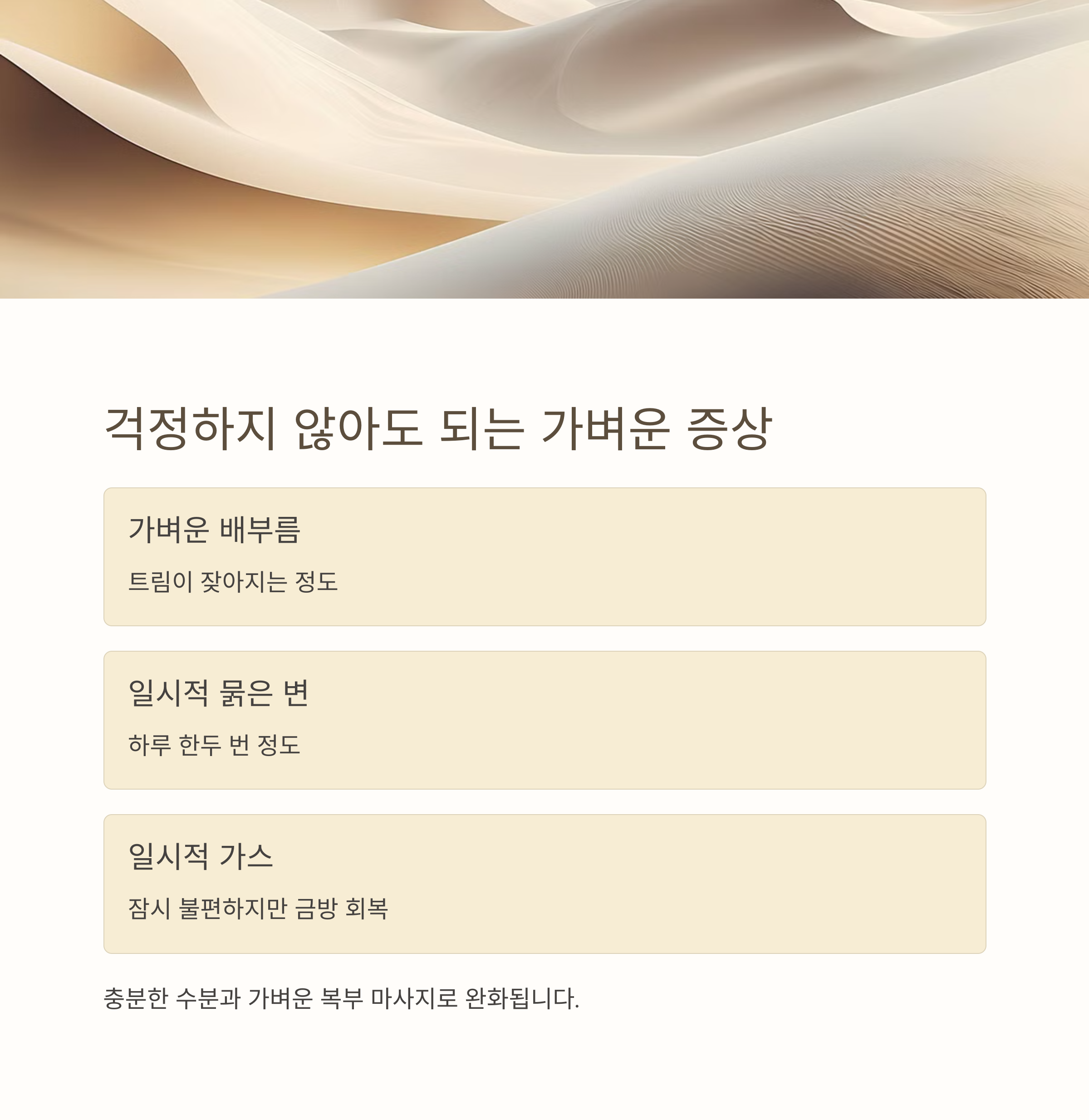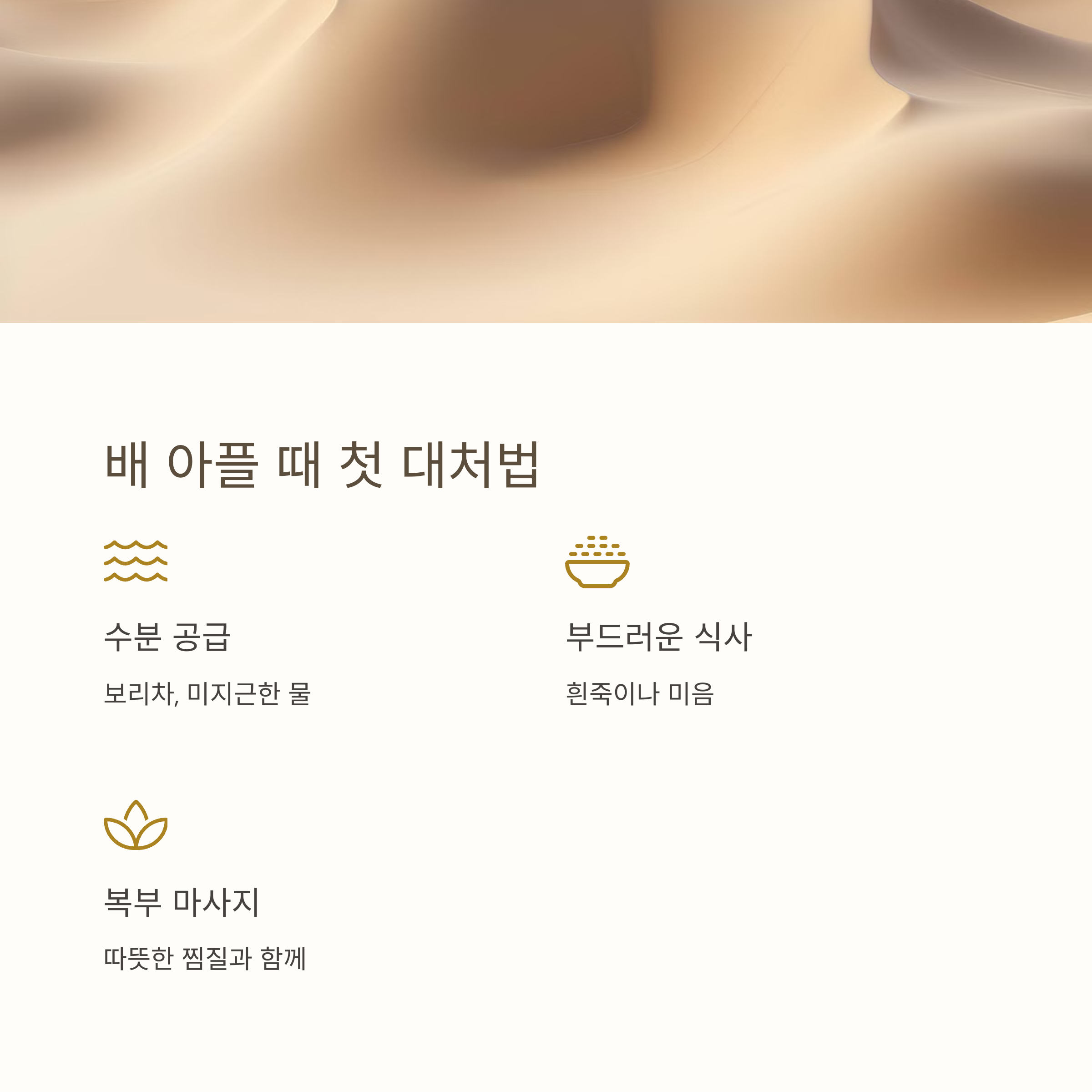 이런 경우는 충분한 수분 섭취와 가벼운 복부 마사지만으로도 좋아질 수 있어요. 저도 아이에게 미지근한 보리차를 주고 배를 살살 문질러 주니 한결 편안해하더라고요. 😊