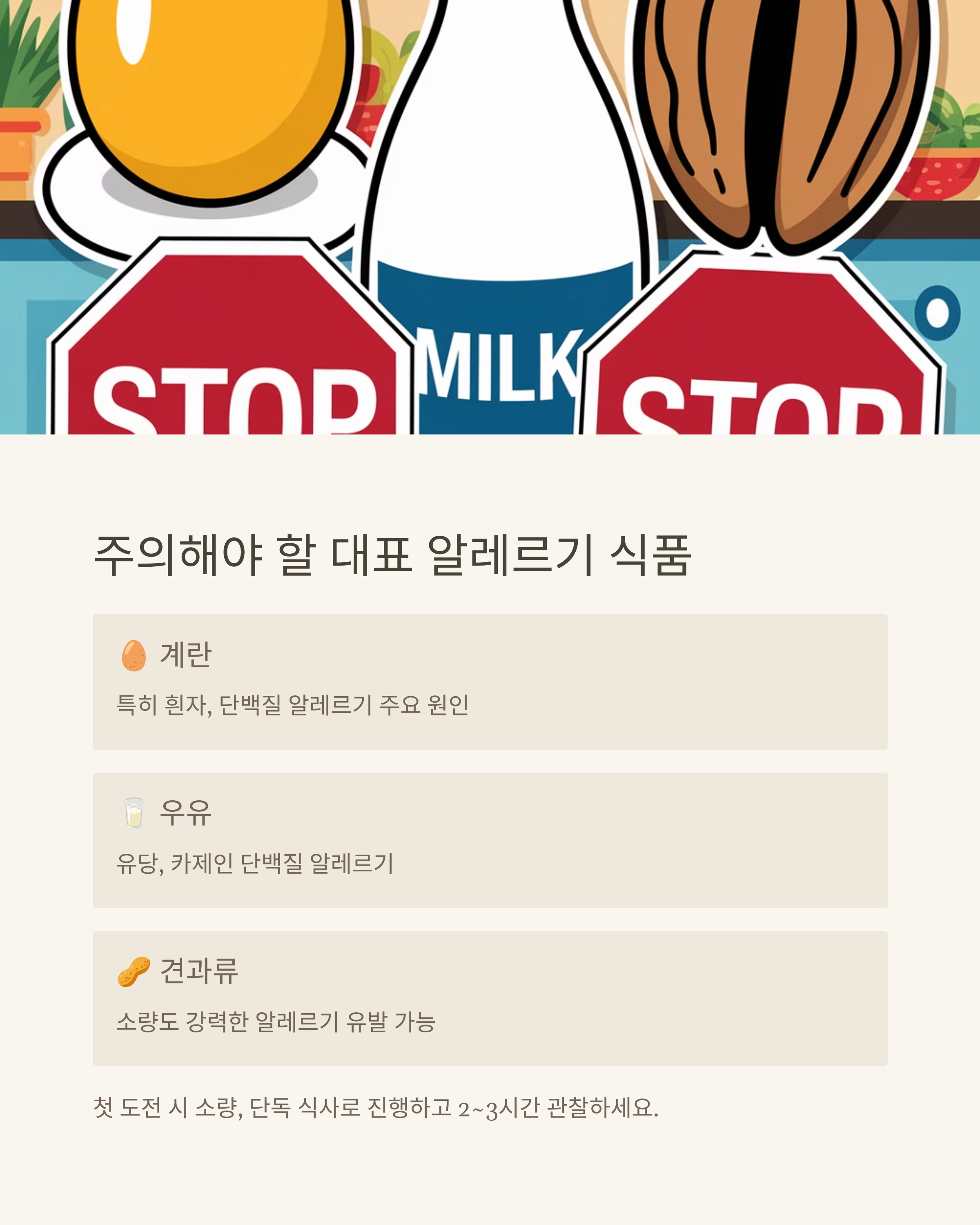 - 🥚 계란 (특히 흰자) - 단백질 알레르기의 대표적 원인