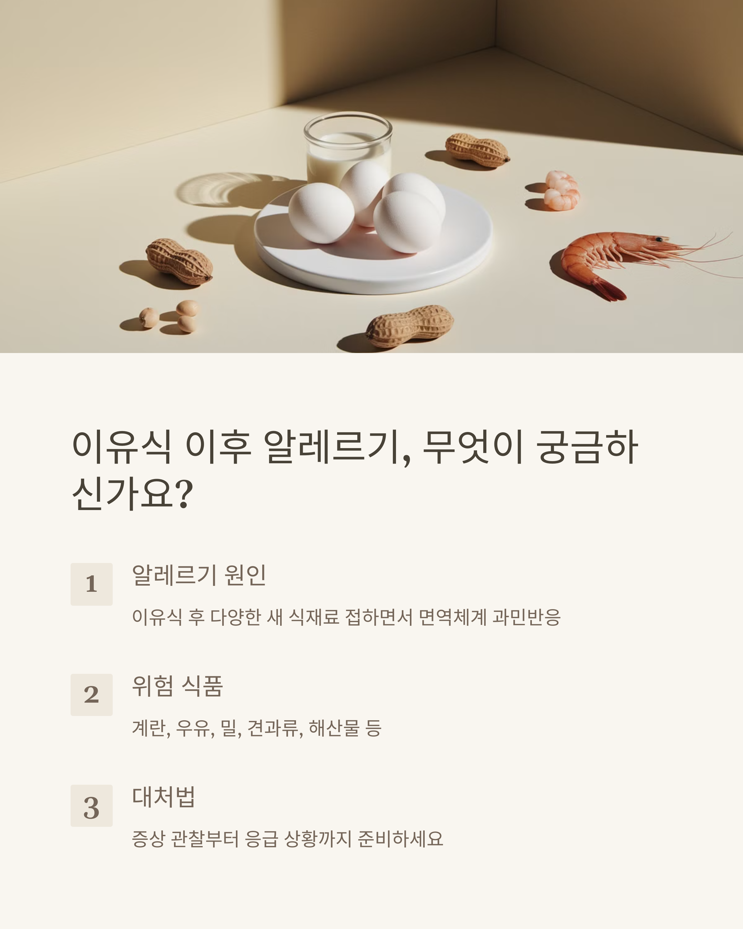 이유식을 끝내고 본격적인 일반식을 시작한 아기들, 잘 먹는 게 기쁘면서도 혹시 모를 알레르기 때문에 걱정이 많으시죠? 저 역시 우리 아이가 이유식 끝나고 새로운 음식을 먹기 시작하면서 갑작스레 얼굴이 붉어지고 두드러기가 올라와 얼마나 당황했는지 몰라요. 오늘은 이유식 이후 자주 나타나는 알레르기에 대해 실제 경험을 바탕으로 자세히 알려드릴게요. 🍼💡