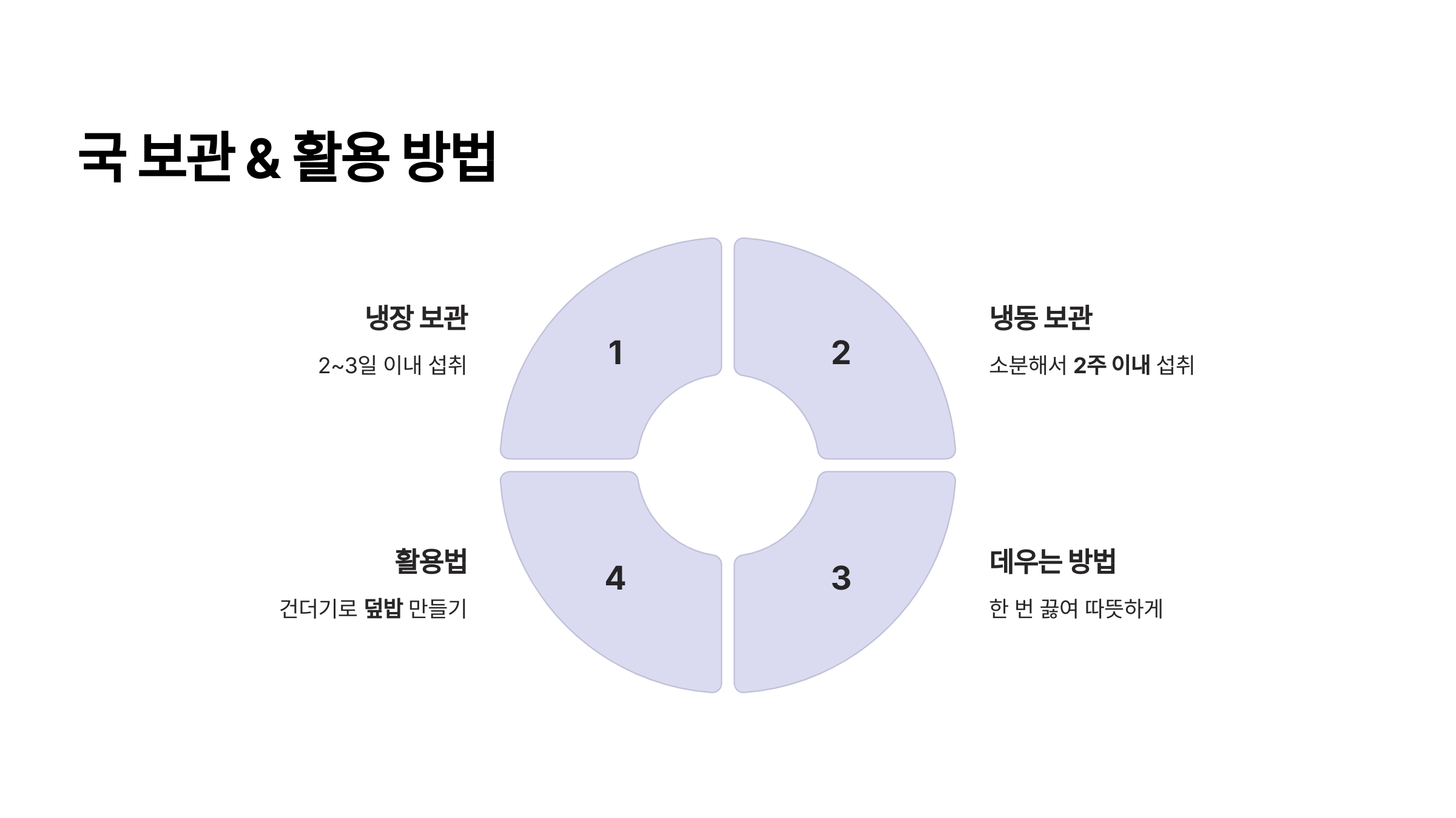 - ✅ 데울 때: 한 번 끓여서 따뜻하게 만들어 주세요.