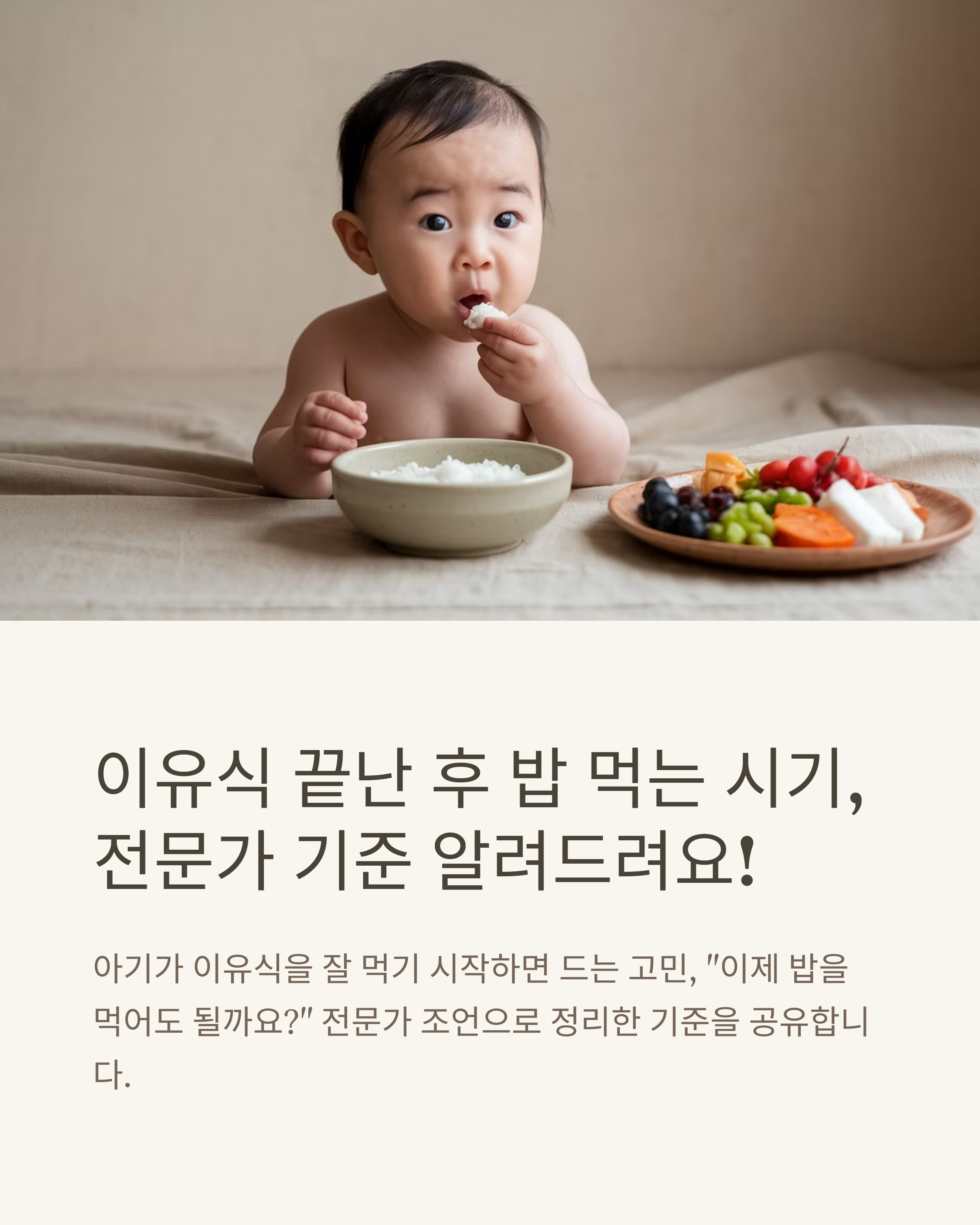 아기가 어느 정도 이유식을 잘 먹기 시작하면, 부모님들의 고민은 바로 이거죠! "이제 밥을 먹어도 될까요?" 저도 첫 아이 때는 정말 수없이 검색하고, 소아과에 묻고, 주변 엄마들에게 물어봤던 기억이 나요. 오늘은 제가 직접 겪고 전문가의 조언까지 듣고 정리한 '이유식 끝난 후 밥 먹는 시기와 기준'을 상세하게 알려드릴게요! 🍚😊