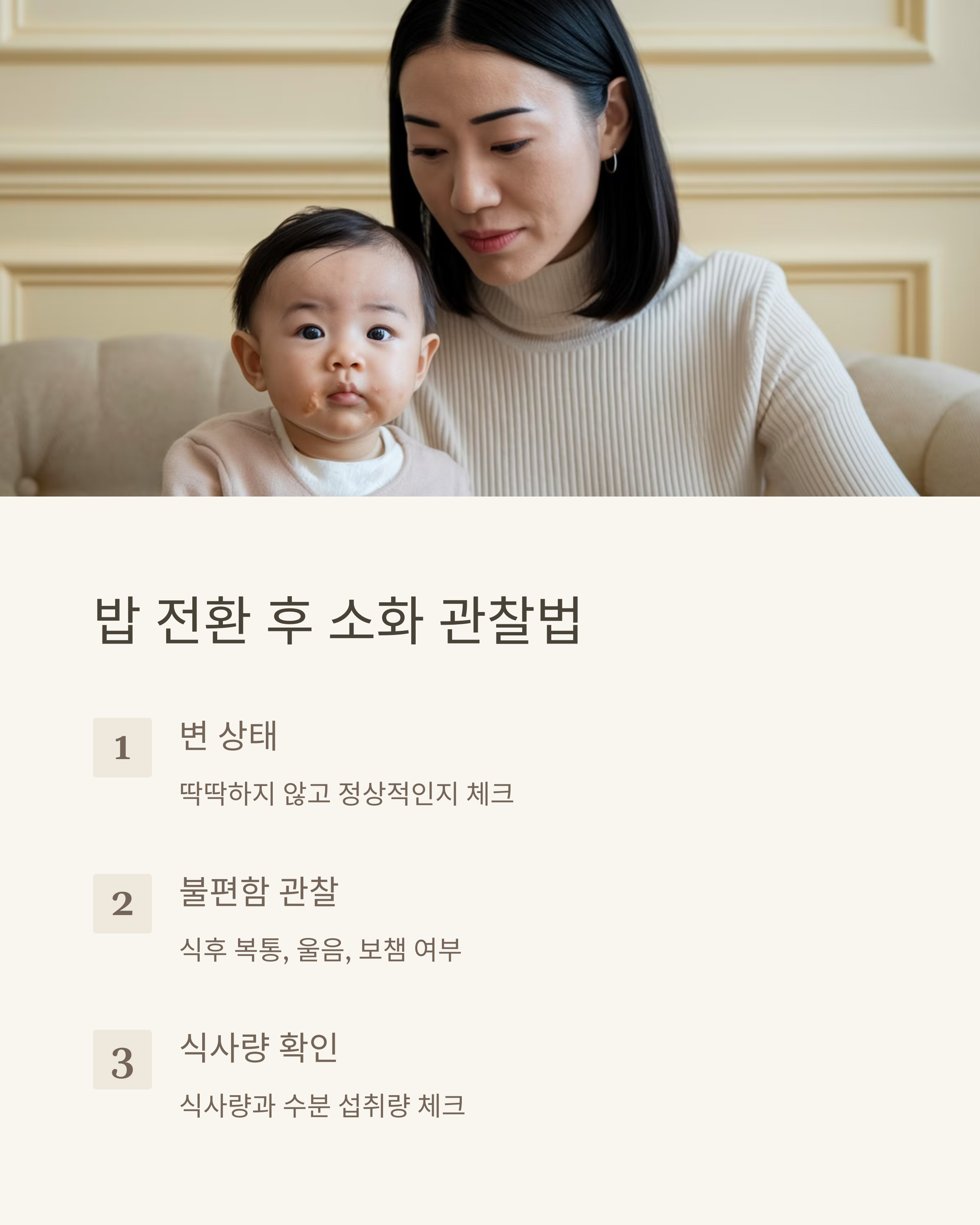 ## 밥 전환 후 아기의 소화 관찰 방법