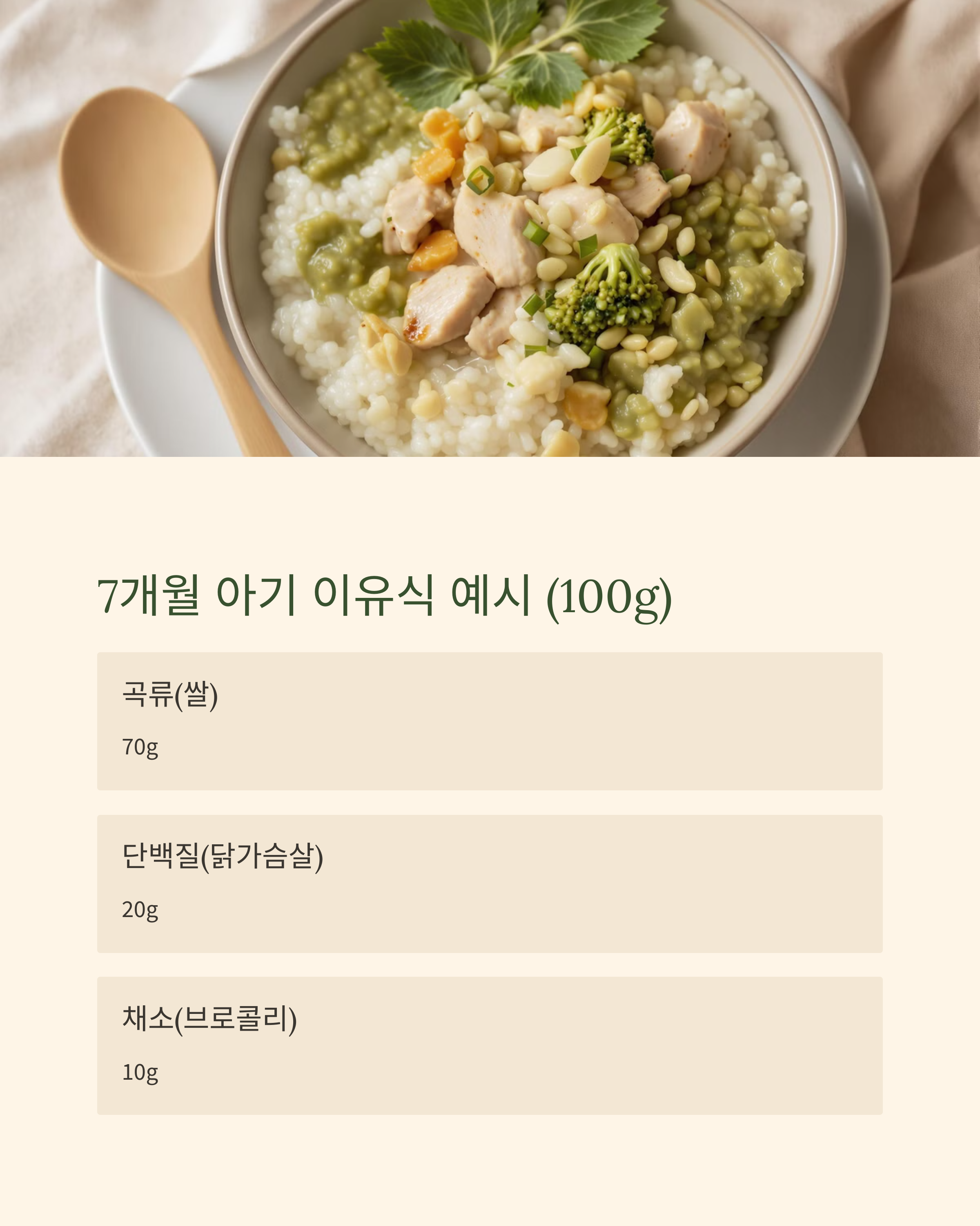 예시: 7개월 아기 이유식 (한 끼 분량 100g)