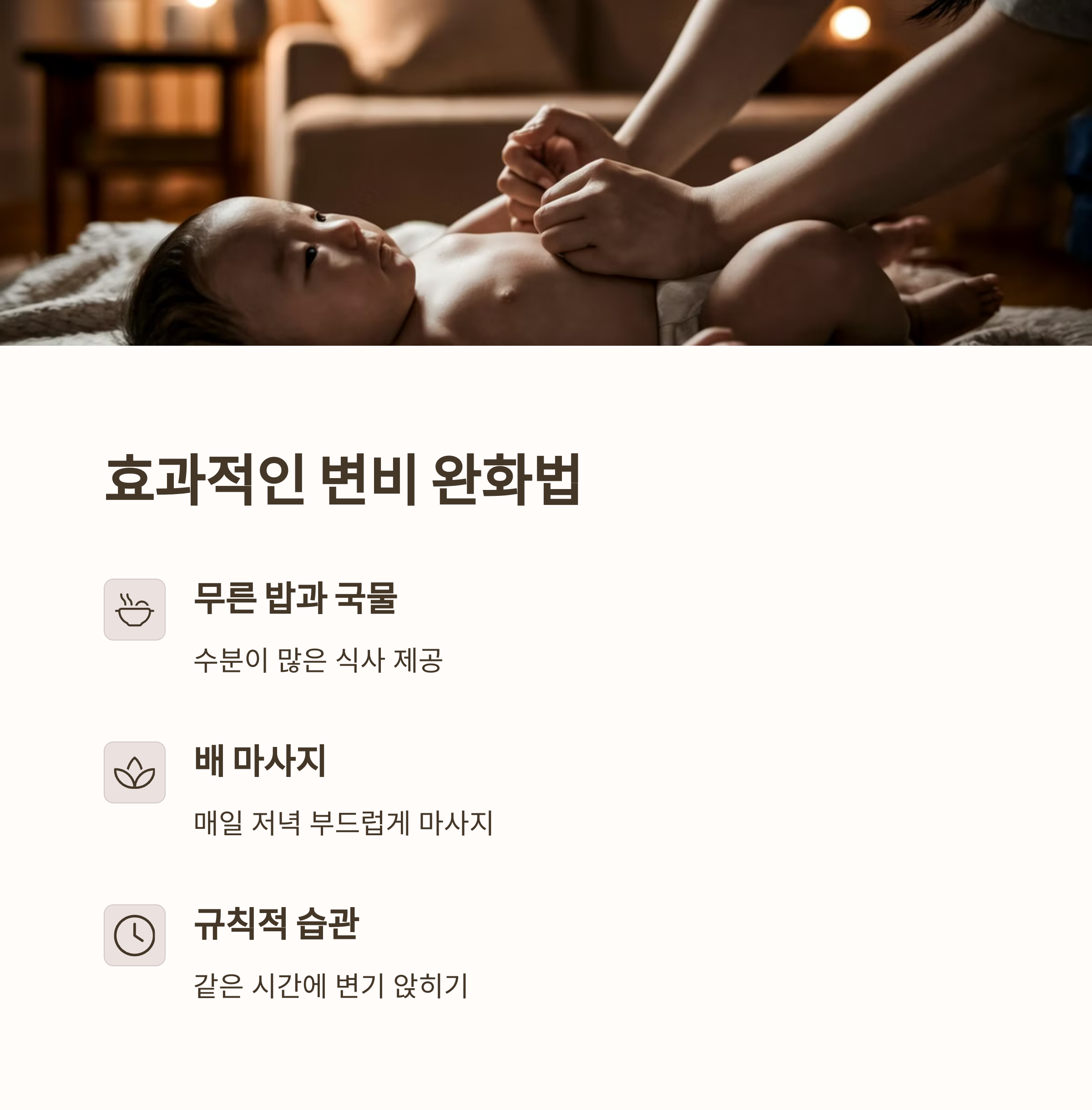 이유식에서 밥과 반찬으로 넘어가는 시점은 아기에게 큰 변화예요. 그동안 죽이나 미음처럼 부드러운 음식만 먹던 아이가 갑자기 밥, 고기, 다양한 반찬을 먹게 되죠. 그런데 아기의 장은 아직 완벽하게 성숙하지 않아서 소화가 느리고 변을 잘 만들지 못하는 경우가 많아요. 게다가 처음 접하는 음식의 질감과 양 때문에 장이 놀라면서 변비가 올 수 있습니다. 우리 아이도 1~2일씩 변을 보지 않다가 배를 두드리며 아픈 표정을 지을 때 정말 가슴이 찢어지더라고요. 😥