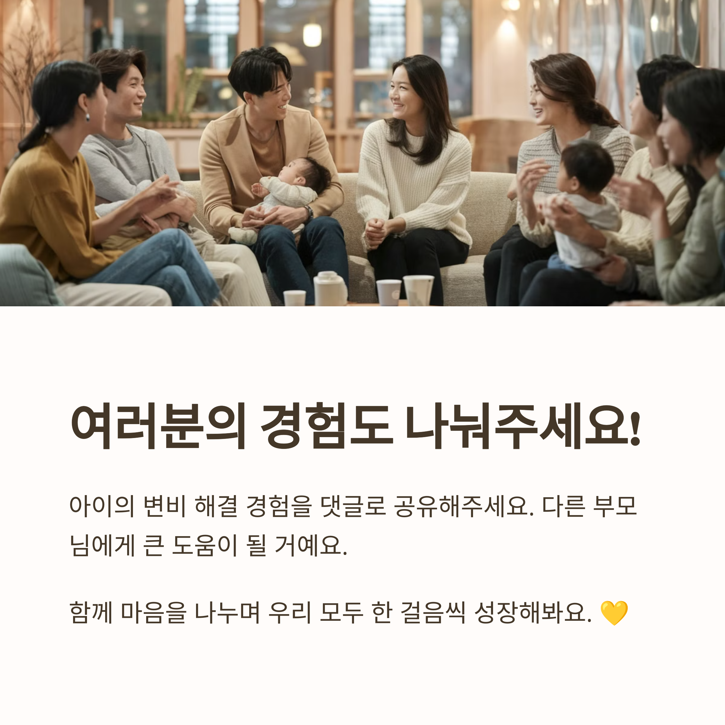 여러분의 아이는 변비로 어떤 어려움을 겪었고, 어떤 해결 방법이 가장 효과적이었나요? 댓글로 따뜻한 경험을 공유해 주세요. 여러분의 이야기가 또 다른 부모님의 큰 힘이 될 거예요. 함께 마음을 나누며, 우리 모두 한 걸음씩 성장해 봐요. 💬💛