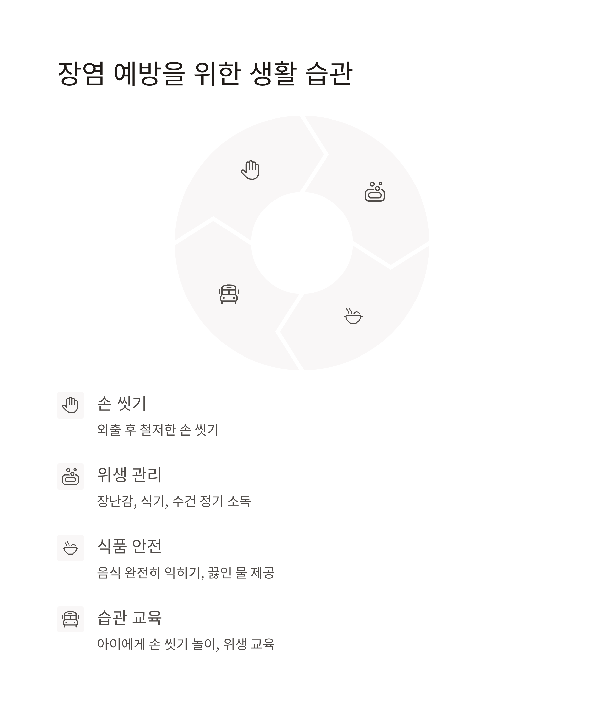 아이에게도 손 씻기 놀이, 위생 그림책 등을 통해 자연스럽게 습관 들이도록 하면 좋아요. 손 씻는 노래도 유용해요. 🎵