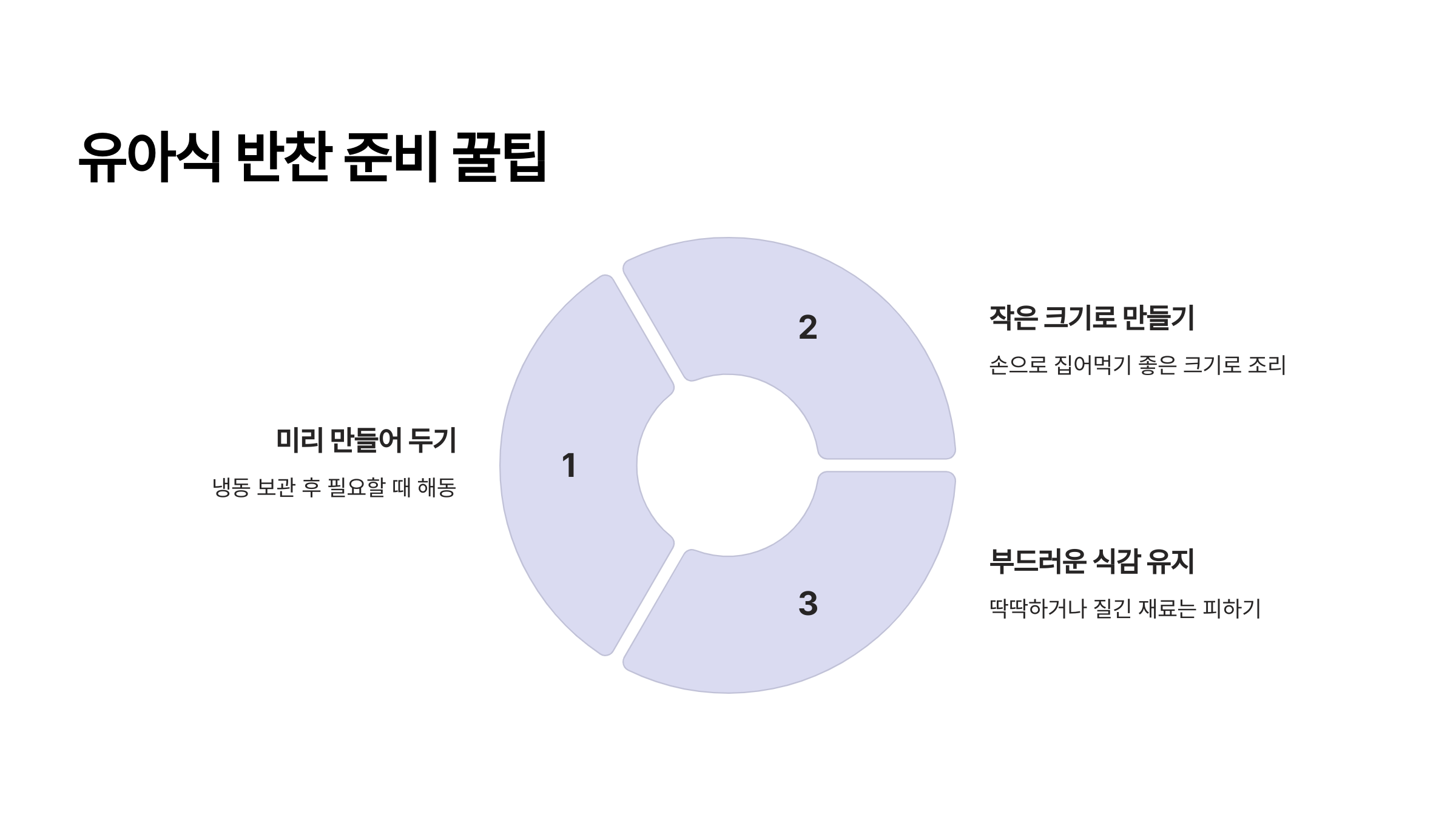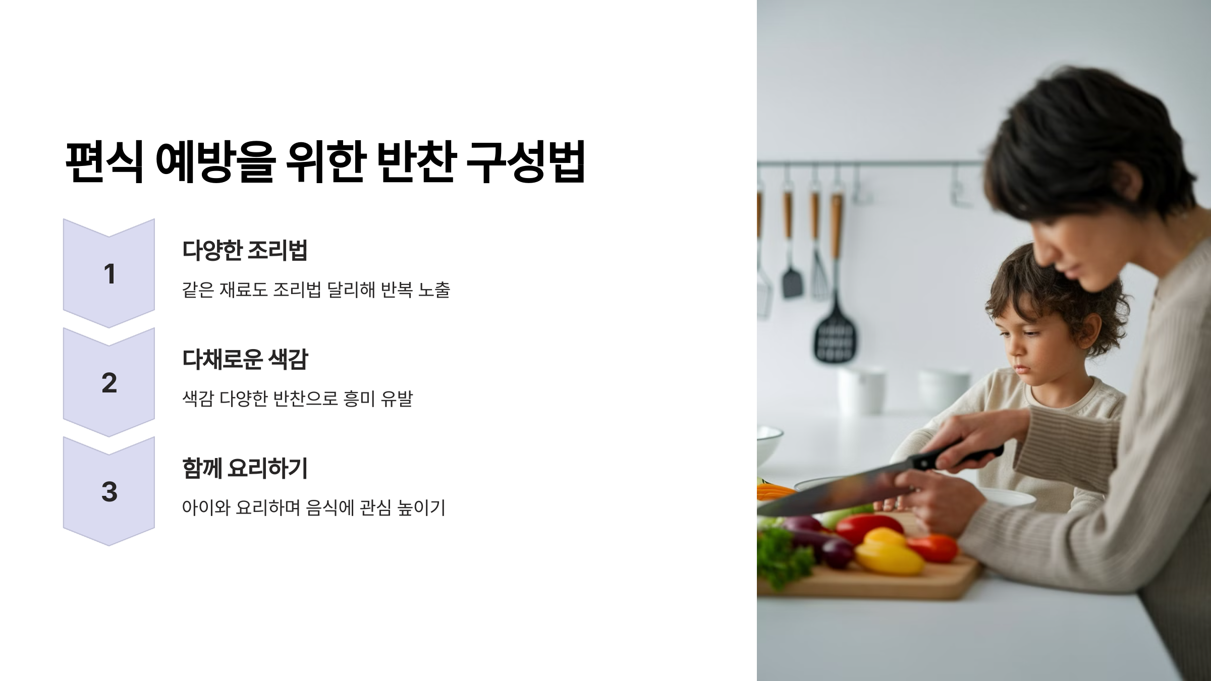 같은 재료를 다양한 방법으로 요리해주고, 요리에 참여시키면 효과적이에요. - 반찬을 미리 만들어두고 보관해도 될까요?