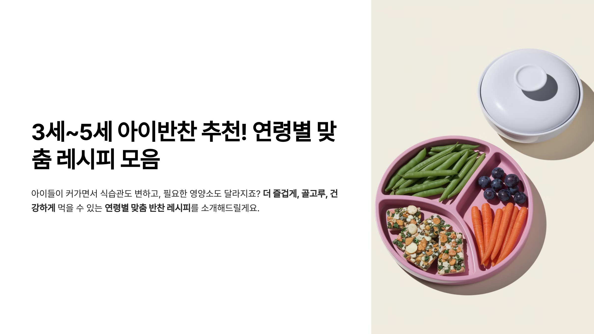 아이들이 커가면서 식습관도 변하고, 필요한 영양소도 달라지죠? 3세~5세 연령별 맞춤 반찬을 준비하면 아이들이 **더 즐겁게, 골고루, 건강하게** 먹을 수 있어요! 오늘은 **연령별 맞춤 반찬 레시피**를 소개해드릴게요. 😊