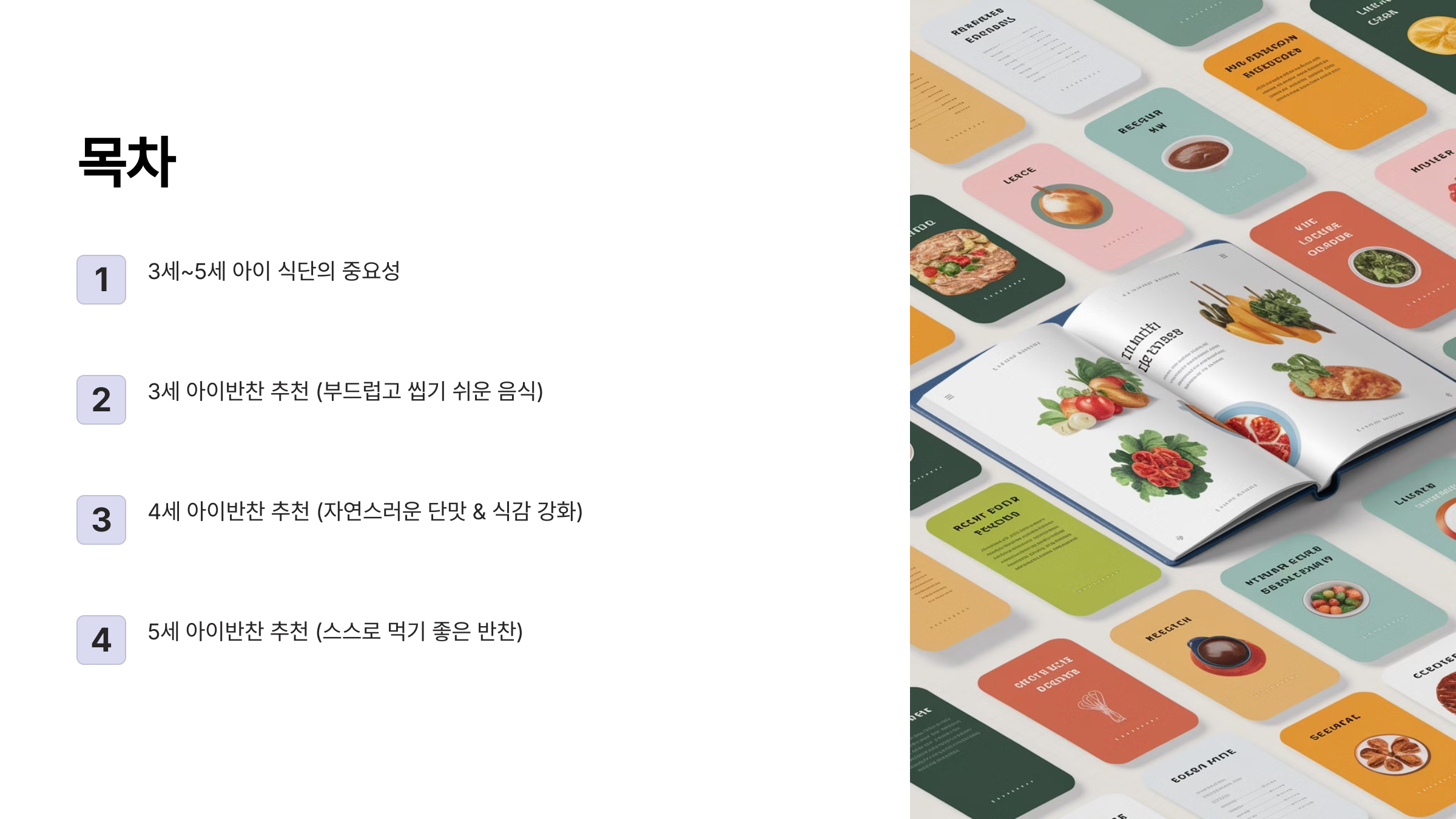 4세부터는 다양한 맛을 경험하면서 식감에도 적응할 수 있어요. 이제는 단순히 부드러운 것뿐만 아니라 **씹는 재미가 있는 반찬**을 준비해보세요! 😊